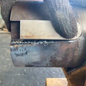 「土を改良する」ための土質改良機ですが、主に土や砂、固化材を投入して使用されるため、混合室内のハンマーやカッターの摩耗が非常に早く進行します。さらに、改良材に使用されるセメント系の固化材などの影響により、部品の腐食や錆の進行も早く、特に混合の中心を担うハンマー部分は過酷な環境にさらされています。今回の整備では、劣化したハンマーの取り外し・交換作業を実施しましたが、取り外し工程には以下のような困難が伴いました。【取り外し時の主な課題】1固化材による固着により、ボルトが内部で折損2ボルトの頭部が摩耗し、丸くなって工具がかからない3最終的に、すべてのボルトをガス溶断にて除去4 このような状況を一つひとつ解決しながら、以下の部品をすべて新品に交換しました。ハンマー本体・固定ピン・ボルト類・ハンマー固定バーの交換後は、ハンマー取り付け部分に肉盛り補強を施し、強度と耐久性をさらに向上させています。